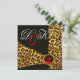 LEOPARD FUR RIBBON, RED RUBY GEMSTONE MONOGRAM EINLADUNG