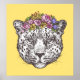 In diesem Design befindet sich ein Leopard in einem Blumenhalo.