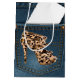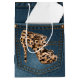 Leopard-hoher Absatz u. blaue Jean-Muster-Tasche Mittlere Geschenktüte