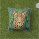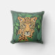 Kissen in einem Leopard mit hellen, intensiven Augen, die durch üppiges grünes Laub gucken. Der scharfe Kontrast zwischen dem gepunkteten Pelz des Leoparden und den lebhaften Blätter schafft einen auffallenden visuellen Effekt.