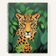 Zeitschrift in einem Leopard mit hellen, intensiven Augen, die durch üppiges grünes Laub schrecken. Der scharfe Kontrast zwischen dem gepunkteten Pelz des Leoparden und den lebhaften Blätter schafft einen auffallenden visuellen Effekt.