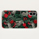 Ein exotisches Dschungelmuster mit Leoparden, tropischem Dschungelblättern und rote Rosen auf einem kontrastierenden schwarzen Hintergrund machen dieses Handy Gehäuse Pop mit einzigartigem Stil. Ein rautenförmiger Rahmen umgibt Ihr Monogramm-Initial, um dieses Gehäuse einzigartig zu machen. Die Farben sind hellbeige, grün, rot und schwarz. Personalisieren Sie Ihre Monografie.
