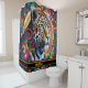 Ein faszinierendes Leopardendesign vervollständigt einen Duschvorhang, der lebendige Farben und aufwändige Muster vereint und das Dekor des Badezimmers mit einer Touch von Eleganz und künstlerischem Flair ergänzt. HINWEIS zum Ändern von Text- oder Grenzfarben mithilfe des Entwurfstools Bearbeiten