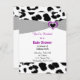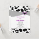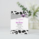 Ein Rahmen aus schwarz-weißem Leopardenmuster, der durch ein schwarzes Band und ein lila Herz betont wird. Passen Sie Ihre Babydusche nach Wunsch an.