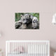 Mit einem atemberaubenden Blick auf einen kleinen weißen Leopard, der Sie von einem Felsen draußen anschaut.Dies ist ein wunderschönes Foto auf diesem Poster