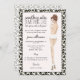 Geben Sie der Braut eine sexy Dessous-Dusche mit einer schicken Einladung mit Leopardenhintergrund und der Braut, sich in ihren Höschen zu befinden. Roter Satin und Spitzen-Teddy auf der Rückseite mit den Dessous der Braut. Wählen Sie die Farbe der Haare und den Hautton der Braut aus den verfügbaren Optionen.