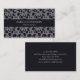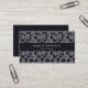 A dark grey leopard print is on the front of this business card with a black stripe across the middle where you can customize the white typography with your name and business details. The back of the card has a simple black background with white typography for you to add your contact details.