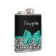 Leopard Print Emerald Green Ribbon Bow Chic Name Flachmann