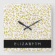 Leopard Print, Gold Leopard, Glitzer, Ihr Name Quadratische Wanduhr