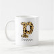Personalisieren Sie diese benutzerdefinierte leopard drucken Kleinbuchstaben "p" Kaffee Tasse durch Hinzufügen eines Namens. Die Optionen zum Ändern der Textfarbe für den Namen, die Textgröße und den Typ des Schriftartes sind verfügbar.