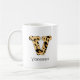 Personalisieren Sie diese benutzerdefinierte leopard drucken Kleinbuchstaben "v" Kaffee-Tasse durch Hinzufügen eines Namens. Der schwarze Text für den individuelle Name befindet sich in einem handgeschriebenen Schriftart.