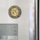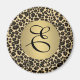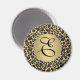 Runder Magnet mit einem Bild eines anpassbaren, gebürsteten Goldzirkels auf einem leoparden Druckhintergrund.