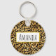 Eine Schlüsselkette mit einem stilvollen Muster. Exotische schwarze Leoparden auf einem goldenen Hintergrund. Wilder und dennoch eleganter Stil. Ein weißer Rechteckrahmen mit einer goldenen Folie in Imitaten, die oben mit dem personalisierten Text überlagert ist.