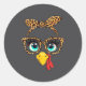 Leopard Print Thanksgiving Funny Turkey Face Gles Runder Aufkleber