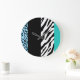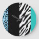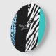 Leopard Print, Zebra Print, Animal Print, Blue Große Wanduhr
