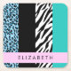 Leopard Print, Zebra Print, Blau, Ihr Name Rechteckiger Pappuntersetzer