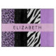 Elegante, stilvolle und raffinierte Leoparden- und Zebramuster in lila Farbe. Modernes und trendiges Geschenk, perfekt für den Liebhaber von Tierdrucken in Ihrem Leben. Personalisieren Sie diese durch Hinzufügen von Namen, Spitznamen, Monogramm oder Initialen.