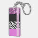 Leopard Print, Zebra Print, Rosa, Ihr Name Schlüsselanhänger