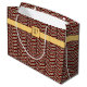 Ein trendiges, Zickzack Muster zeichnet sich durch eine kräftig bordeauxrote und hellweiße Schicht aus, die mit modischen Leoparden belegt ist. Eine tiefe braune Linie trennt die Zickzack Säulen für eine klassische endgültige Touch. Passen Sie das Monogramm auf dieser Tasche an, um eine wirklich einzigartige und personalisierte Art und Weise zu schaffen, ein Geschenk an jemanden besonderen zu geben.
