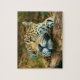 Spielpuzzlespiel gezeigt mit einem Fotodruck eines schönen Leoparden. Fertigen Sie dieses Einzelteil besonders an oder kaufen Sie, wie ist. Auf Lager Sie Bild