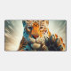 Diese Schreibtischmatte hat einen Leopard darauf.