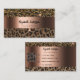 Eine elegante und feminine Karte mit Farbverlauf in Braun und Schwarz. Ein Leopardenmuster mit goldenem Funkeln, Konfetti. Ein Imitat Bronze-Look Band vorne. Vorlage für Ihren Namen und Text auf der Vorderseite. Schwarze Buchstaben. Der Name ist mit einem modernen und trendigen Handschrift geschrieben. Zurück: Vorlagen für Ihren Namen, Titel, Telefonnummer, E-Mail und Website-Adresse. Fügen Sie Ihren Link/URL zur QR-Code hinzu. Ideal für Unternehmerinnen, Berater, Geschäftsinhaber, Make-up-Künstler.