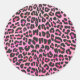 Leopard, Schwarz und Heiß-Rosa Runder Aufkleber