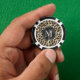 Destei’s ursprünglicher Leopard-Kunstprint, inspiriert von Wildkatzenfellmustern und natürlichen Tiertexturen, mit einem runden Banner in falscher schwarzer Folientextur, das Sie mit einem Monogramm personalisieren können.