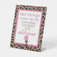 Leopard und Rosa Adresse der Babydusche am Umschla Sockelschild