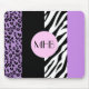 Leopard, Zebra, Tierdruck, Lila, Monogramm Mousepad