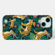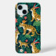 Leoparden mit Federhäuten, umgeben von tropischen Blume und Blätter in einem dichten Dschungelumfeld, lebhaften Farben, spielerischem Design.