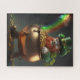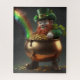 Ein glücklicher Kobold hält sich an einem großen Topf Gold und es gibt ein Puzzle mit Regenbogen-Puzzle. Wird in einem Rahmen gut aussehen, nachdem Sie das Rätsel abgeschlossen haben.