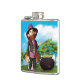3D digitales Rendering eines charmanten kleinen Koboldes, Goldtopf und Kleeblatt auf blauem Himmel und grünem Wiesenhintergrund