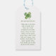 Diese Geschenkmarke des St Patrick's Day enthält einen niedlichen, wasserfarbenen Leprechaun mit dem Satz "Happy St Patrick's Day in einem grünen Serif-Schriftart. Auf der Rückseite ist ein alter irischer Segen