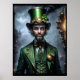 Steampunk Kobold mit bösen grünen Augen. Ai unterstützte Bild und Adobe Fotoshop beendet. Bild- und Bildkomposition. Wall Art für St. Patty's Day. Das Bild ist bei den meisten Produkten verfügbar. Böses, das Leprechaun aussieht. Dunkle Künste.