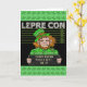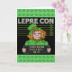 Dieser lustige St. Patrick's Day Kobold setzt den "Krug"in diesem Mugshot-Design in den Kobold. Auf der Oberseite steht "Lepre Con" in Stacheldraht, und das Board, das er hält, sagt "Paddy Wagon Police Dept. 03-17." Die Hintergrundfarbe ist schwarz und grün mit Kleeblättern. Der Insider-Text lautet: "Wähle dein Gold. Happy Saint Patrick's Day!" aber Sie können es anpassen, wie Sie möchten. Dies wäre eine humorvolle Art, Grüße für St. Patty's Day zu senden.