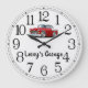 Leroy's Garage Red & White Classic Car Große Wanduhr