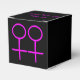 Diese phantastische Gefälligkeitsbox ist für Lesben konzipiert. Es verfügt über zwei rosa Frauensymbole, die nebeneinander stehend sind. Der Hintergrund ist schwarz. Auf dem Kasten ist ein anpassbarer Text, der die Namen des glücklichen Paares enthält.