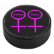 Dieser phantastische Hockey Puck ist für Lesben konzipiert. Es verfügt über zwei rosa Frauensymbole, die nebeneinander stehend sind. Der Hintergrund ist schwarz, und in jedem der Symbole ist ein anpassbarer rosa Text vorhanden.