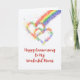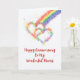 Touch die Herzen Ihrer beiden wunderbaren Schwulen / Lesben Mäuse mit dieser herzlichen Jubiläumsgrusskarte mit einem wunderschönen "Spritzer Farbe" Regenbogen der sechs Flaggenfarben mit Halbschuss, der in zwei ineinander greifenden Herzen endet.