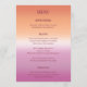Lesbian wedding menu for two brides featuring the lesbian pride flag gradient—soft pink blending to warm orange—with photo. Displays your wedding photo with menu sections for appetizers, mains, and desserts. The gradient background highlights the entire menu and ties in beautifully with the rest of the collection, creating a cohesive look throughout your wedding. Your names and wedding date appear in elegant script. Perfect for two brides who want to present their reception menu with style while reflecting their love and pride. All text elements are fully editable and ready to personalize with your menu selections. For customization support, please email: remidevandesigns@gmail.com LoveOutLoudStudio©.