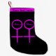 Dieser phantastische Strumpf ist für Lesben konzipiert. Es verfügt über zwei rosa Frauensymbole, die nebeneinander stehend sind. Der Hintergrund ist schwarz, und in jedem der Symbole ist ein anpassbarer rosa Text vorhanden. Am oberen Rand des Strumpfs befindet sich ein anpassbarer Text, der personalisiert werden kann.