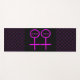 Diese phantastische Yogamat ist für Lesben konzipiert. Es verfügt über zwei rosa Frauensymbole, die nebeneinander stehend sind. Der Hintergrund ist schwarz, und in jedem der Symbole ist ein anpassbarer rosa Text vorhanden.