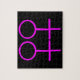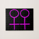 Dieses phantastische Rätsel ist für Lesben gedacht. Es verfügt über zwei rosa Frauensymbole, die nebeneinander stehend sind. Der Hintergrund ist schwarz.