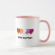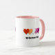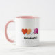 Individuell anpassbare Tasse mit Herzdesign in lesbischer Stolzflagge; orange, weiß und rosa Stolz; mit einer anpassbaren Textvorlage