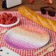 Dieses Imitat Glitzer-Gefälle erzeugt einen warmen Sonnenaufgang in den fröhlichen Farben der lesbischen Community Stolz Fahne - Magenta, Rosa, Weiß, Orange und Rot. Lassen Sie sich mit funkelnd Märchenstaub in den Tag legen!