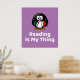 Niedlicher und lustiger Pinguin "Reading Is My Thing", der seine Bücher hält.