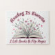 Lebhaftes, farbenfrohes Design mit einem offenen Buch mit Wildblumen. Der farbenfrohe Text lautet: "Lesen ist Übung. Ich hebe Bücher und drehte Seiten". Dieses Design ist auf einer Vielzahl von Produkten erhältlich.