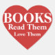 Dieses schlichte Design enthält den Text "BÜCHER" "Read Them" und "Liebe Them" in einem hellroten Herz.