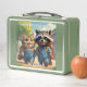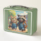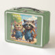 Lesen, Rechtschreibung, Rucksäcke & Lächeln Metal Lunch Box. Eine fröhliche Katze und ein Raccoon, gekleidet in Overalls und Rucksäcken, überspringen glücklich in die Schule. Sie Liebe Bücher zu lesen und schreiben Worte, begeistert für neue Abenteuer in ihren Lieblings-Klassenaktivitäten.